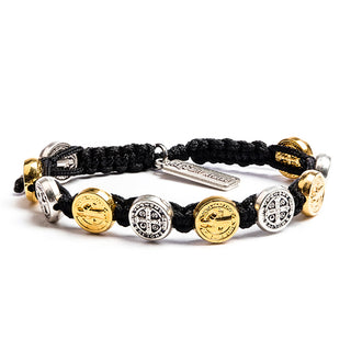 Saint Benedict Stretch Bracelet - Black Wood - Two Tone Gold Plated