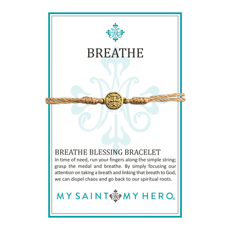Handwoven in Medjugorje, Bosnia and Herzegovina. Our Breathe Blessing Bracelet features a silver or gold dipped 1 cm Benedictine medal and our logo charm. Each bracelet comes displayed on a card with a message and the reminder of the power of prayer. Medals made in Italy.