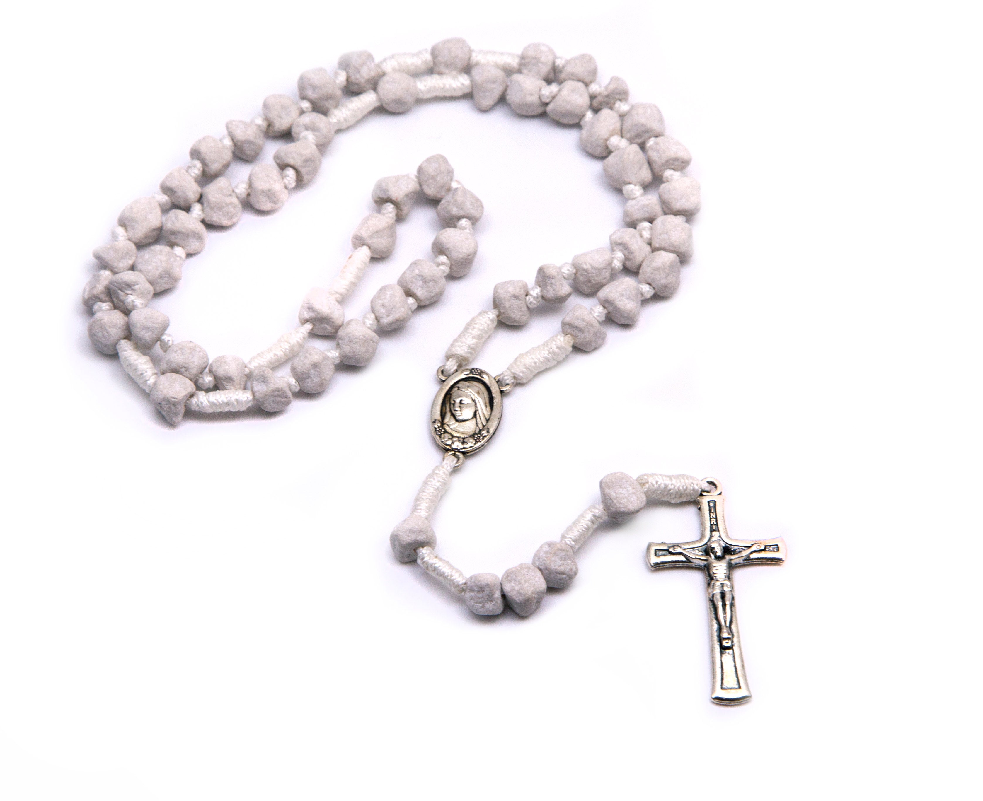 Medjugorje Stone Rosary - White Cord
