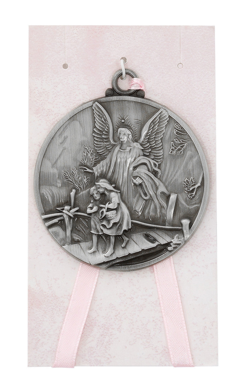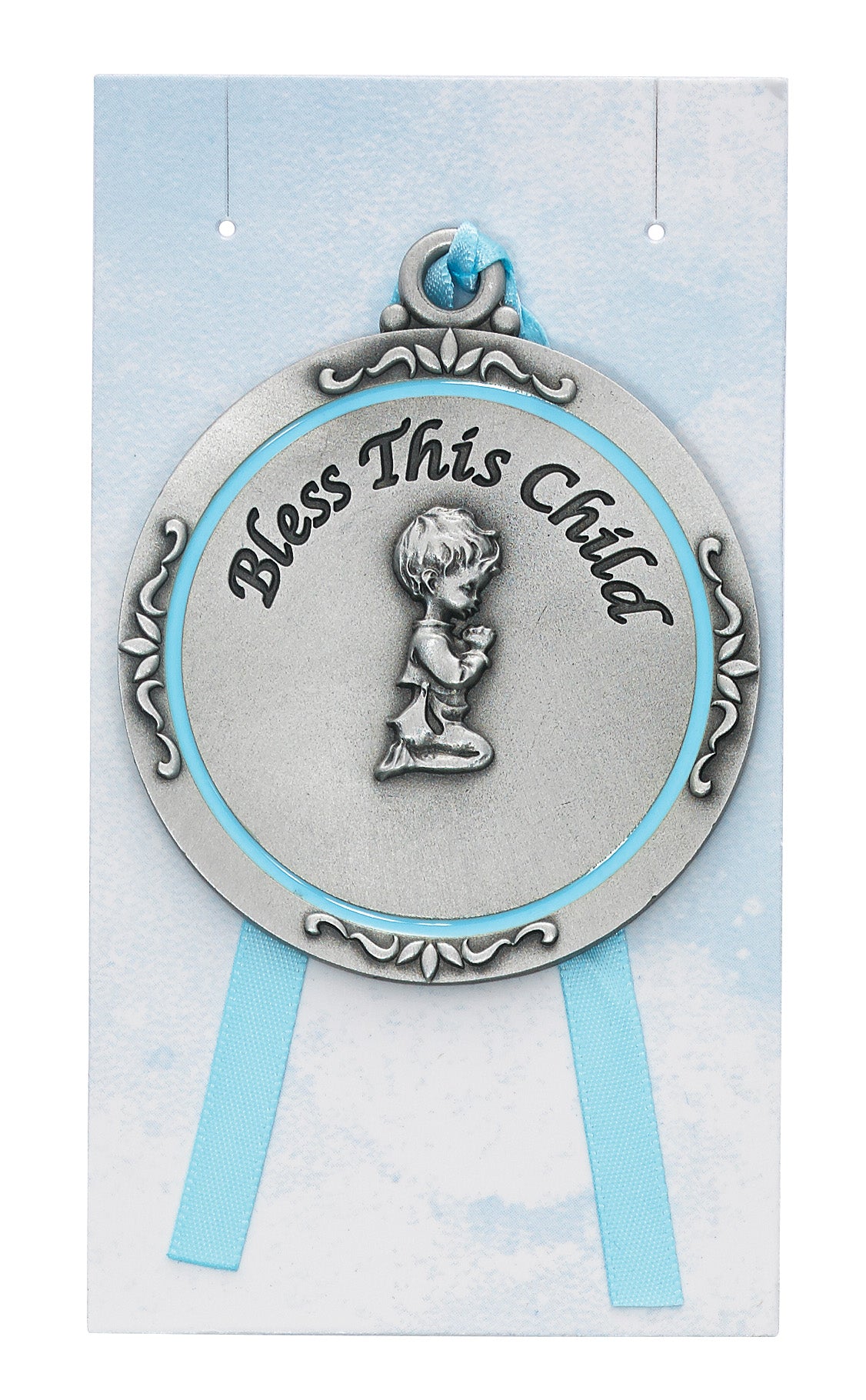 Designed to hang above a crib or attach to bedding, this medal measures approximately 2 inches and includes a ribbon for easy display. Guardian angels watch over our children day and night, and this beautiful sacramental serves as a tender reminder of God's constant care for the youngest members of our family. An ideal gift for baby showers, baptisms, or welcoming a new baby boy home.