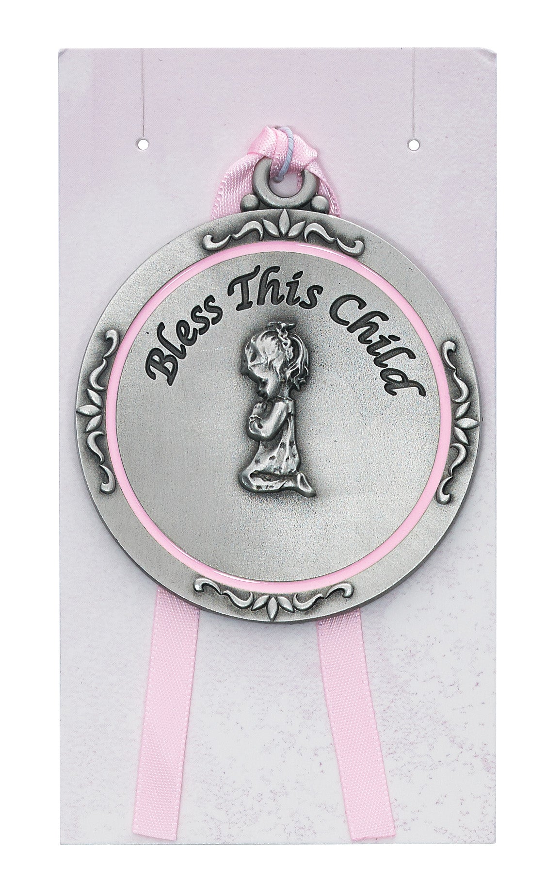 This Girl Crib Medal with Pink Epoxy from McVan brings gentle protection to your little one's nursery. The delicate pink epoxy finish creates a soft, feminine touch perfect for a baby girl's crib or room. Designed to be a sweet reminder of God's watchful care, this medal traditionally features a guardian angel watching over a sleeping child.