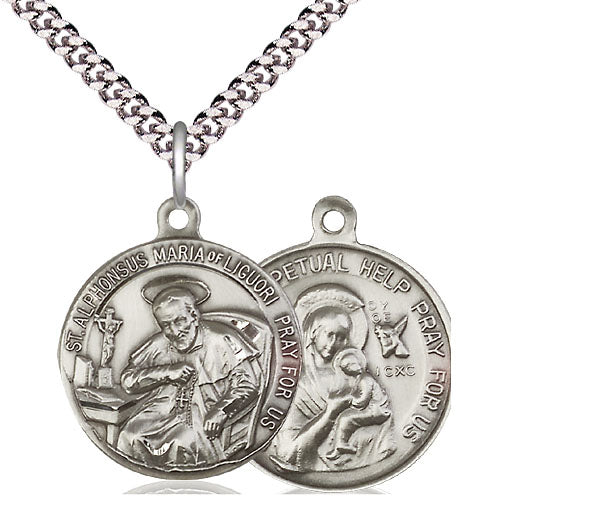Our vintage-style Sterling Silver Saint Alphonsus Pendant on a 24-inch Rhodium Curb Chain is proudly manufactured in the USA.