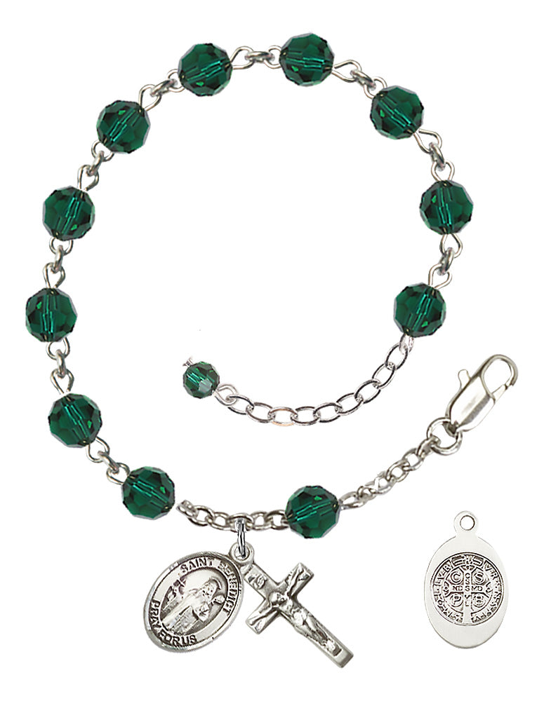 Sterling Silver 6mm Austrian Crystal St. Benedict Rosary Bracelet in Emerald | Engravable