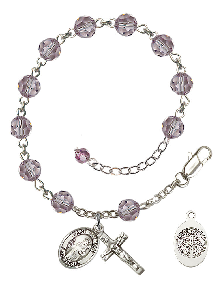Sterling Silver 6mm Austrian Crystal St. Benedict Rosary Bracelet in Light Amethyst | Engravable