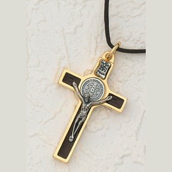 Embrace the powerful intercession of St. Benedict with our 2 Inch St Benedict Cross, Brown Enamel. Crafted with a stunning silver corpus and medal, elegantly trimmed in gold, this cross serves as a daily reminder of faith and protection against evil. It comes beautifully packaged in a corded box, complete with an explanation of the St. Benedict Medal's profound significance.