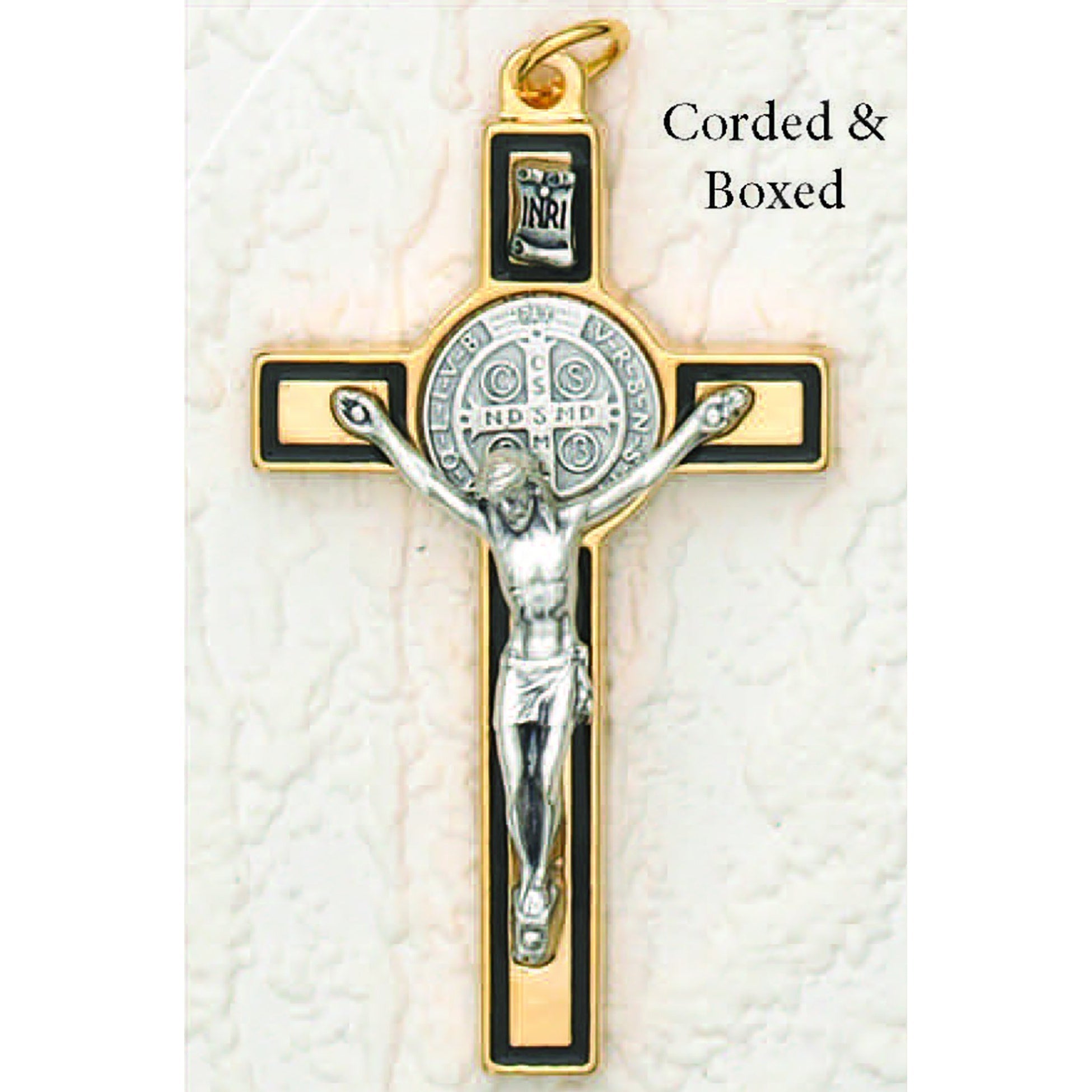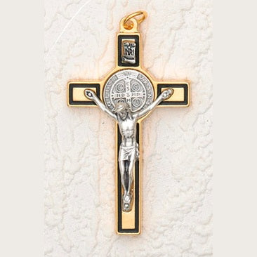 3 inch St Benedict Cross- Gold/Black Cross with Silver Corpus