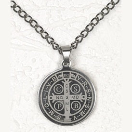 Discover the spiritual strength of the St Benedict Stainless Steel Pendant, a finely crafted medal measuring approximately 1-inch (25mm) in diameter. This beautiful piece is made from durable stainless steel and comes complete with a 24-inch stainless chain, perfect for everyday wear or special occasions. Packaged in an elegant box, it makes a thoughtful gift for loved ones seeking protection and guidance.