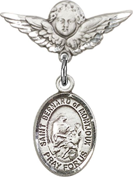 Sterling Silver Baby Badge with St. Bernard of Montjoux Charm and Small Angel w/Wings Badge Pin