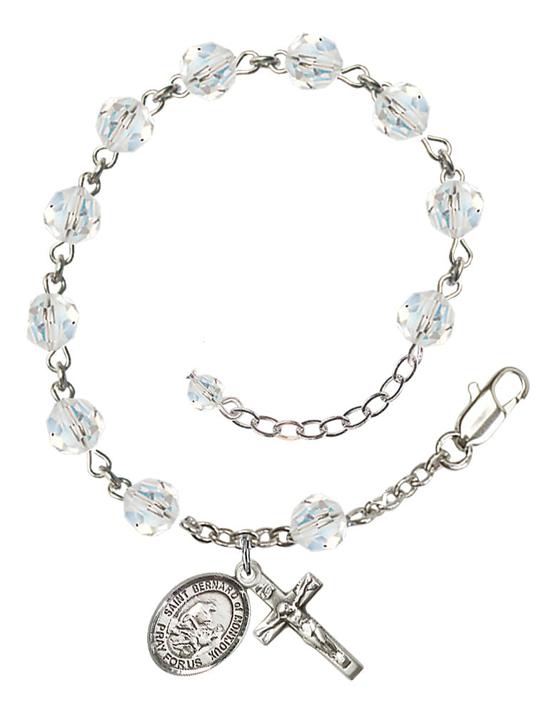 Sterling Silver 6mm Austrian Crystal St. Bernard of Montjoux Rosary Bracelet | Engravable