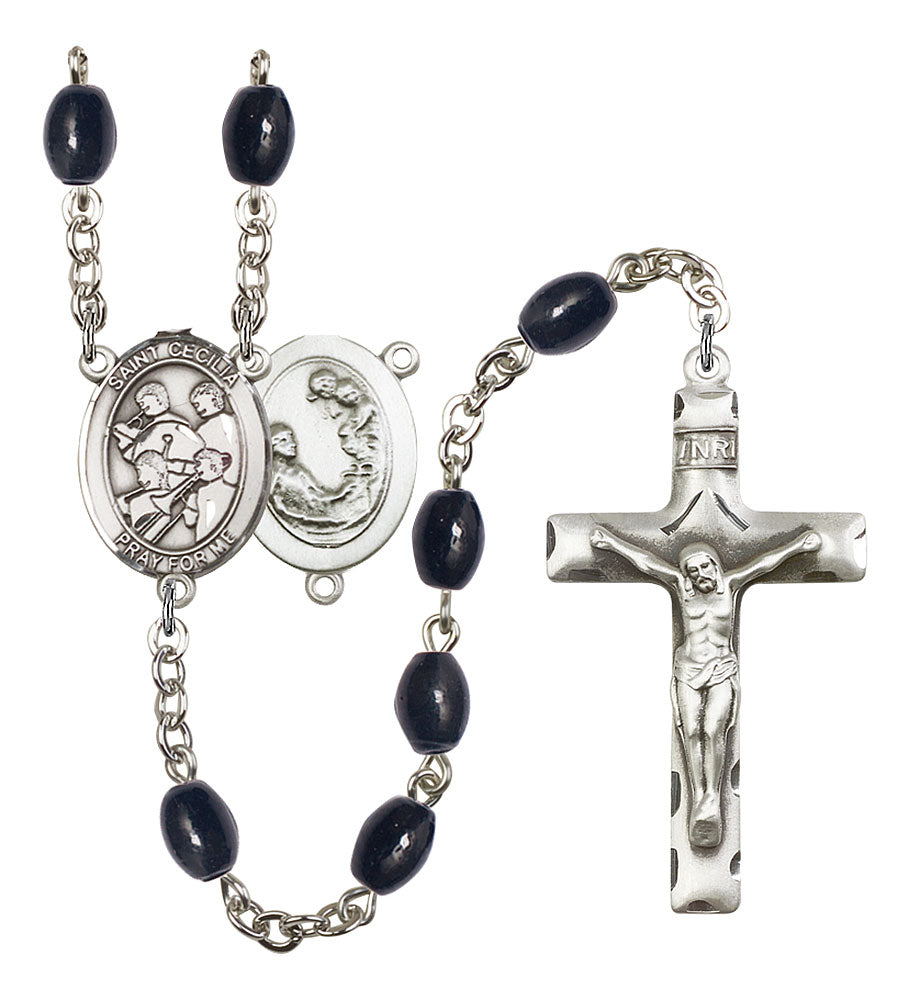 Saint Cecilia and Marching Band Rosary with 8X6mm Black Onyx Beads