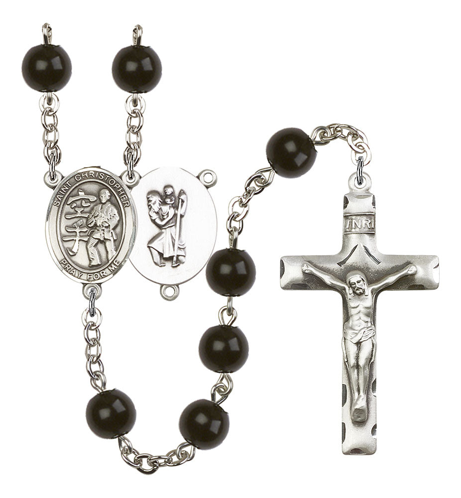 Saint Christopher and Karate Rosary with Black Onyx Beads
