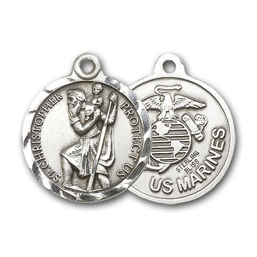 Sterling Silver St. Christopher U.S. Marines Pendant