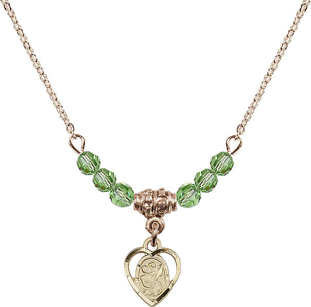 18" Plated Necklace with 4mm Peridot Crystal Beads & 14K-Filled St. Christopher Medal | Engravable