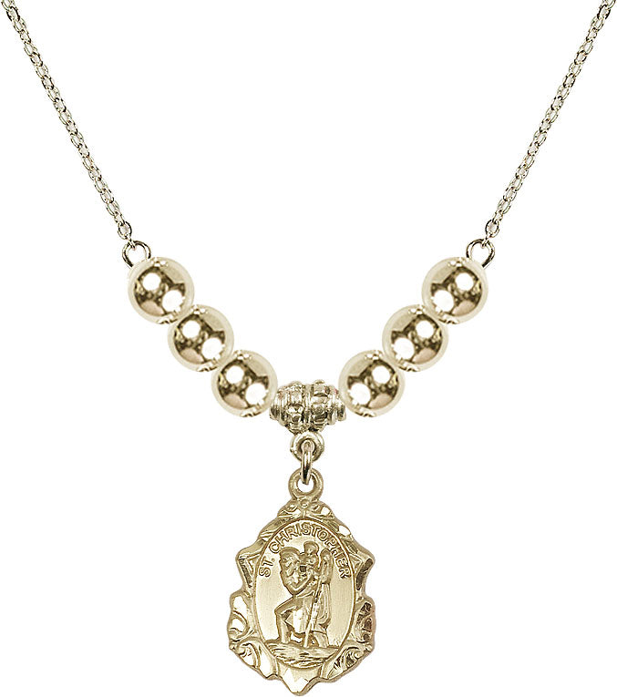 18" Plated Necklace with 6mm 14kt Gold Filled Beads & 14K-Filled St. Christopher Medal | Engravable