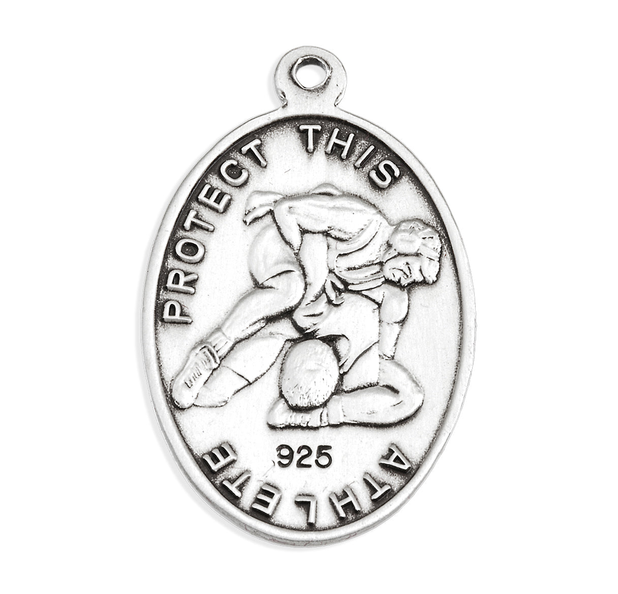 This Sterling Silver St. Christopher Wrestling Athlete Medal is made in the USA.