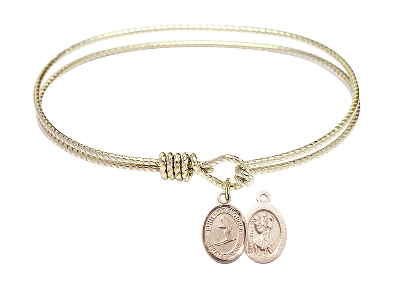 7 1/4 inch Oval Eye Hook Hamilton Gold Bangle Bracelet with 14kt Gold Filled St. Christopher / Skiing Charm