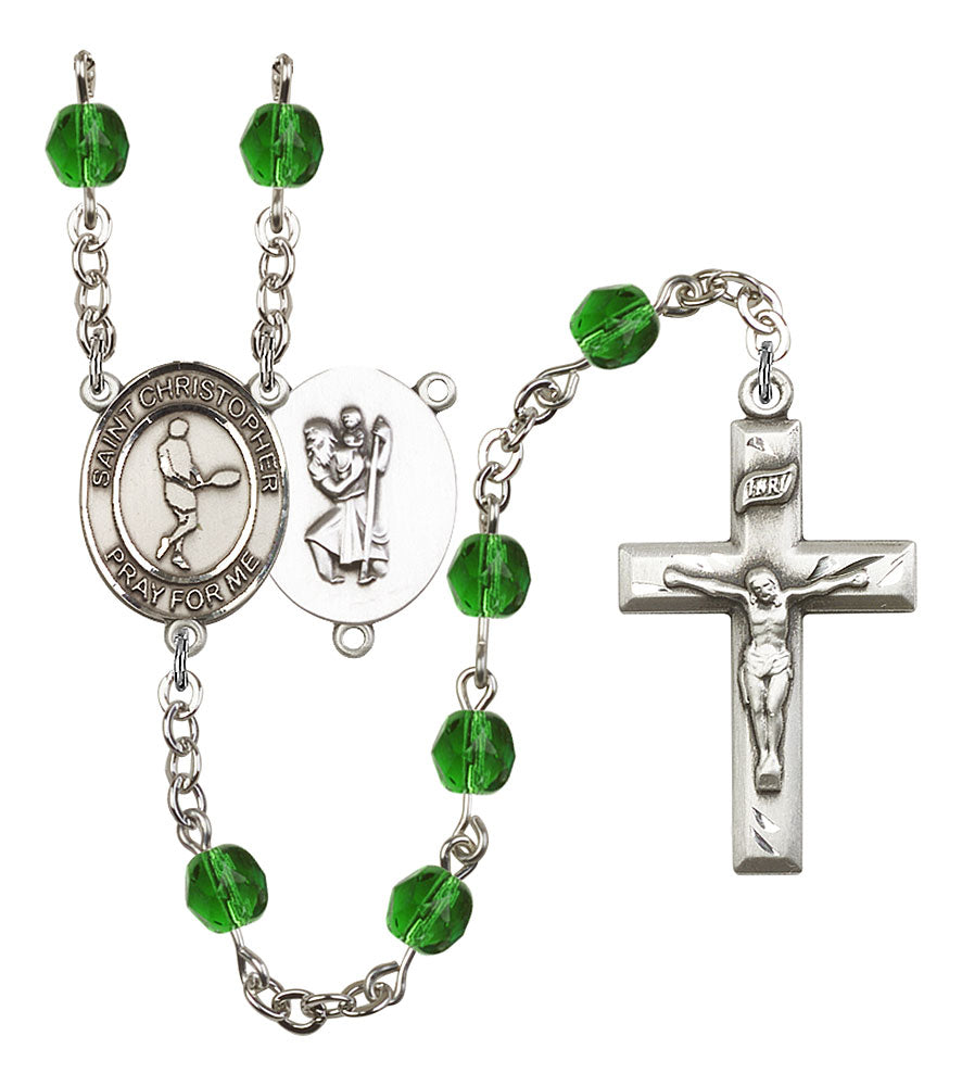 Saint Christopher and Tennis Rosary with Emerald Beads