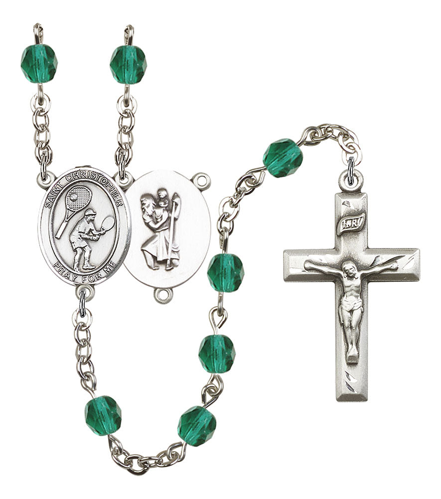 Saint Christopher and Tennis Rosary with Zircon Beads
