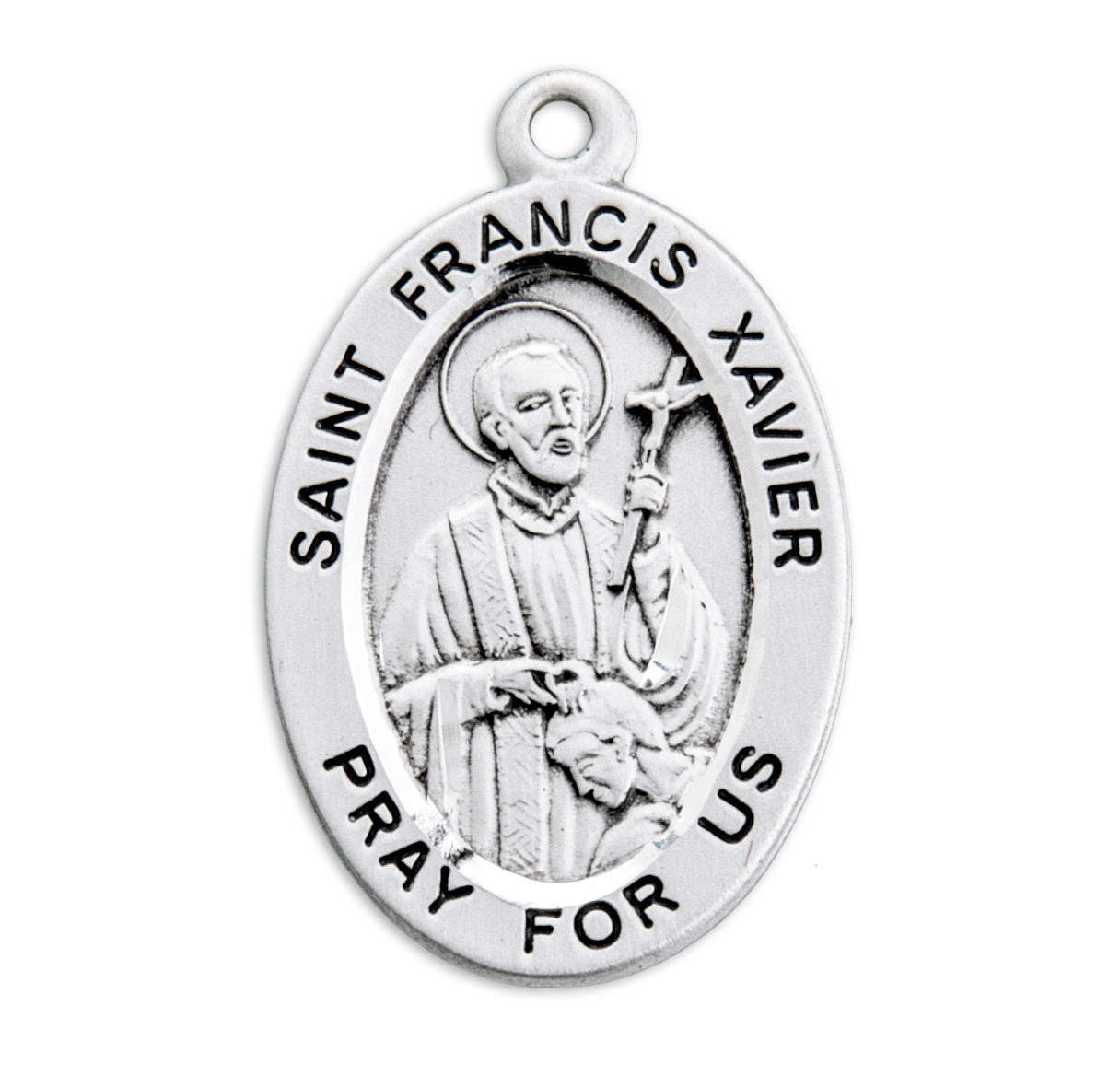 This Sterling Silver St. Francis Xavier Medal with 20-inch Chain and Box is made in the USA.