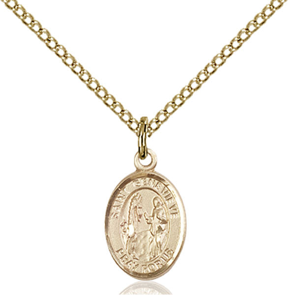 1/2 x 1/4-inch Gold-Filled (14K) St. Genevieve Medal.