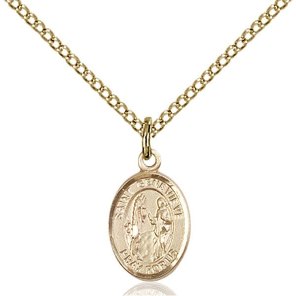 1/2 x 1/4-inch Gold-Filled (14K) St. Genevieve Medal.