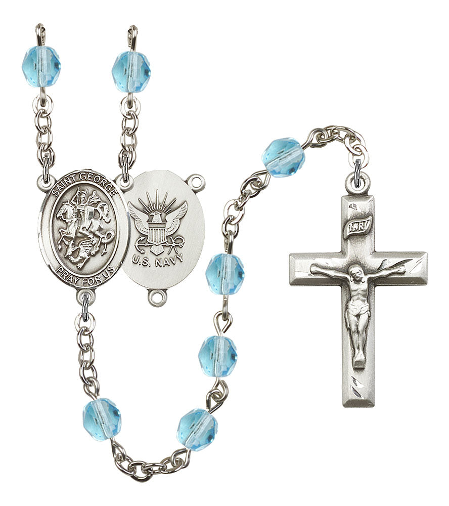 Saint George and Navy Rosary with Aqua Beads