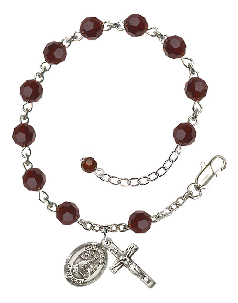 Sterling Silver 6mm Austrian Crystal St. John the Apostle Rosary Bracelet in Garnet | Engravable