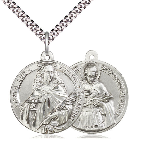 Our vintage-style Sterling Silver Saint Lucia Pendant on a 24-inch Rhodium Curb Chain is proudly manufactured in the USA.