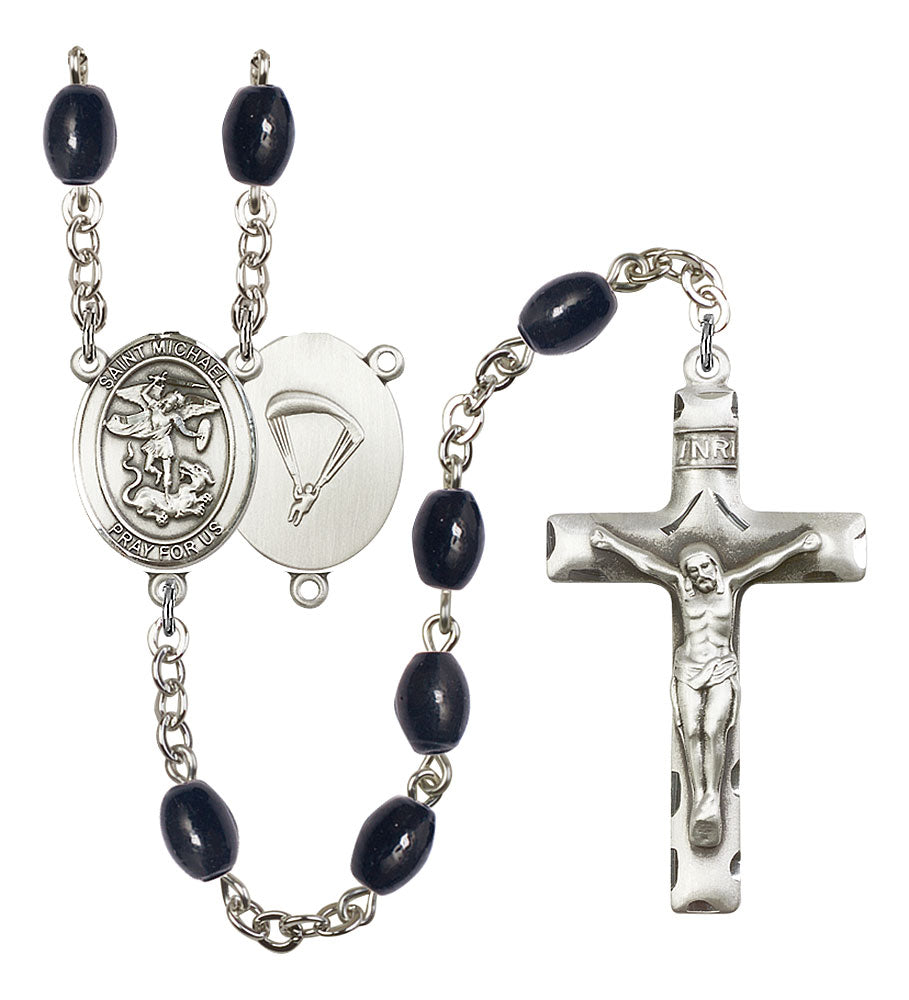 Saint Michael and Paratrooper Rosary with 8X6mm Black Onyx Beads