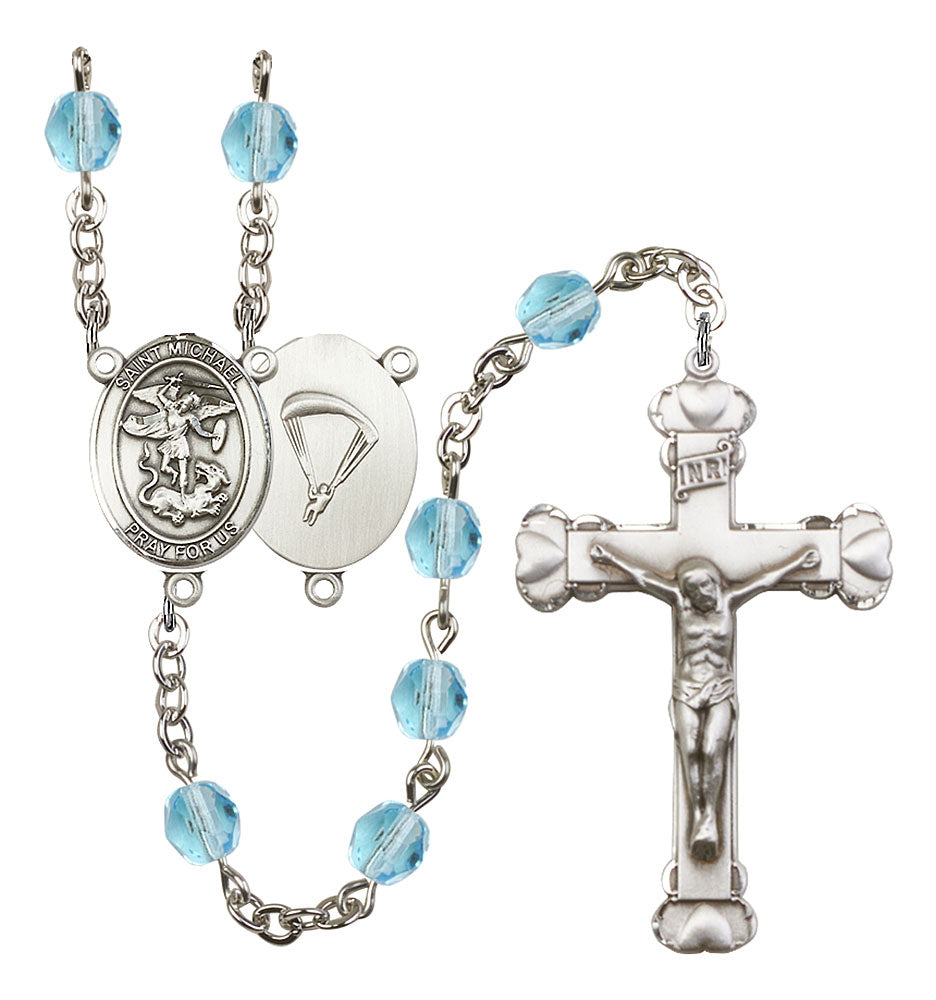Saint Michael and Paratrooper Rosary with Aqua Beads