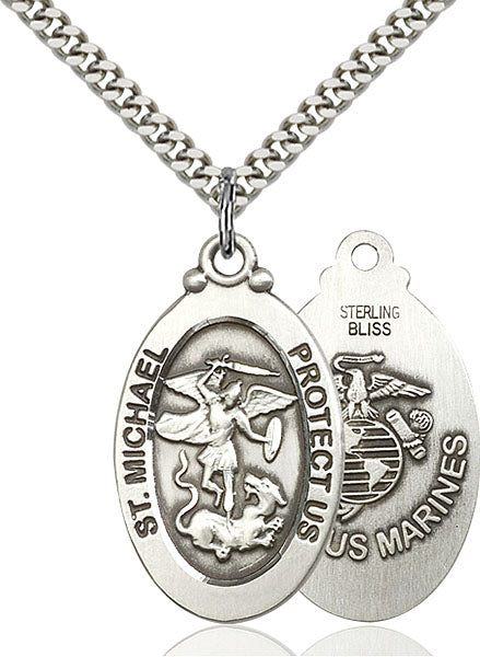 1 1/8 x 5/8-inch Sterling Silver St. Michael / Marines Medal.