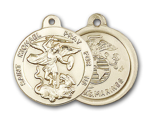 7/8 x 3/4-inch solid 14 Karat gold St. Michael the Archangel Medal.