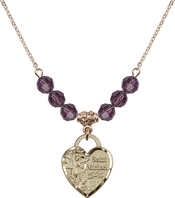 18" Plated Necklace with 4mm Amethyst Crystal Beads & 14K-Filled St. Michael the Archangel Medal | Engravable