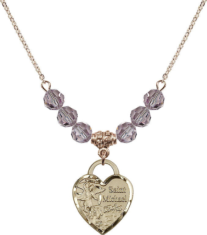 18" Plated Necklace with 4mm Light Amethyst Crystal Beads & 14K-Filled St. Michael the Archangel Medal | Engravable