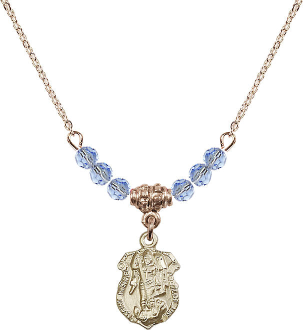 18" Plated Necklace with 4mm Light Sapphire Crystal Beads & 14K-Filled St. Michael the Archangel Medal | Engravable