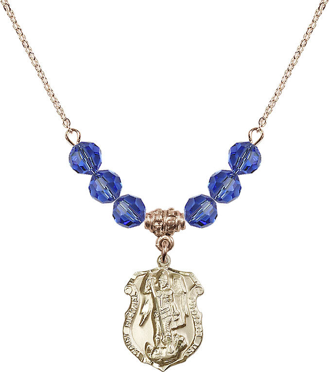 18" Plated Necklace with 4mm Sapphire Crystal Beads & 14K-Filled St. Michael the Archangel Medal | Engravable