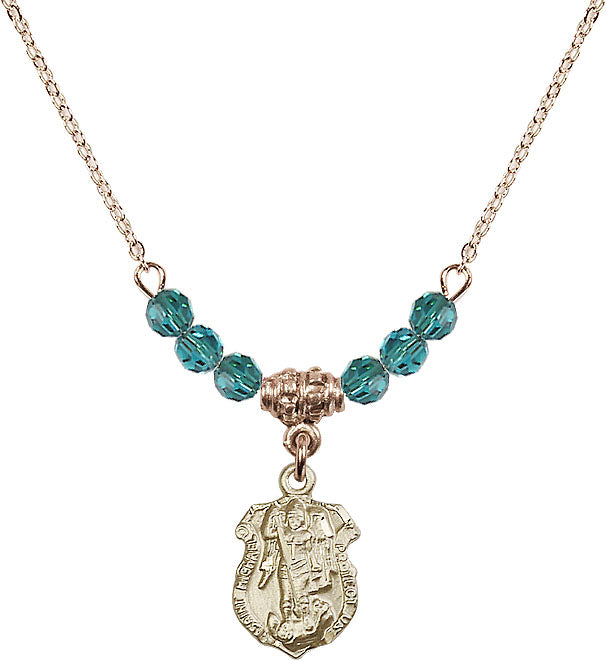 Our 18" Hamilton Gold Plated Necklace with 4mm Zircon Crystal Beads featuring a 14kt Gold Filled Saint Michael the Archangel Medal. is proudly manufactured in the USA.