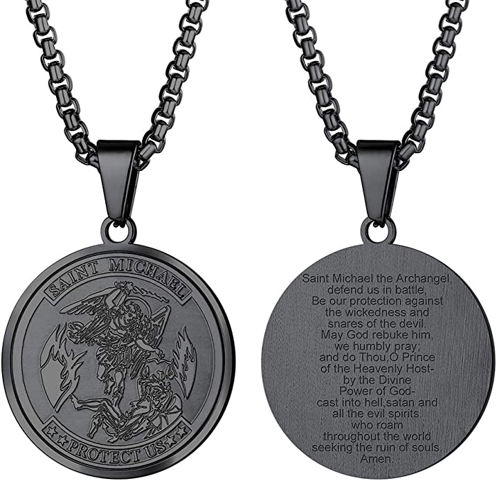 Our stylish St. Michael the Archangel Necklace is made of black gunmetal-plated 316L Stainless Steel.