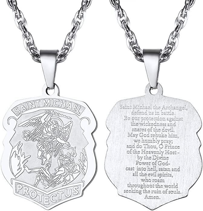 Our strikingly beautiful St. Michael the Archangel Badge Necklace is made of solid 316L Stainless Steel.