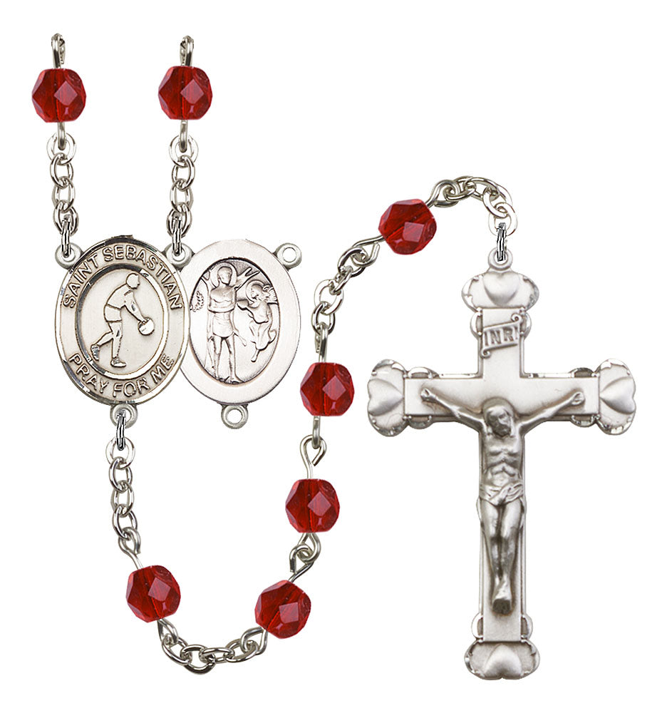 Saint Sebastian and Basketball Rosary with Ruby Beads