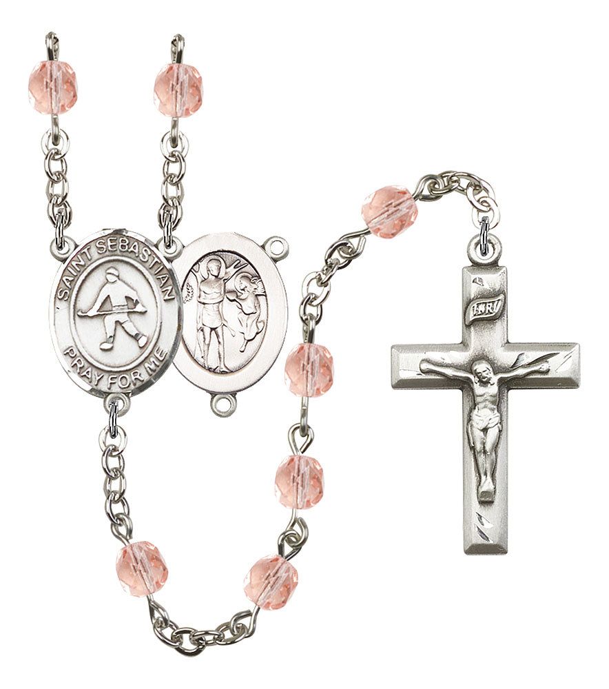 Saint Sebastian and Field Hockey Rosary with Pink Beads