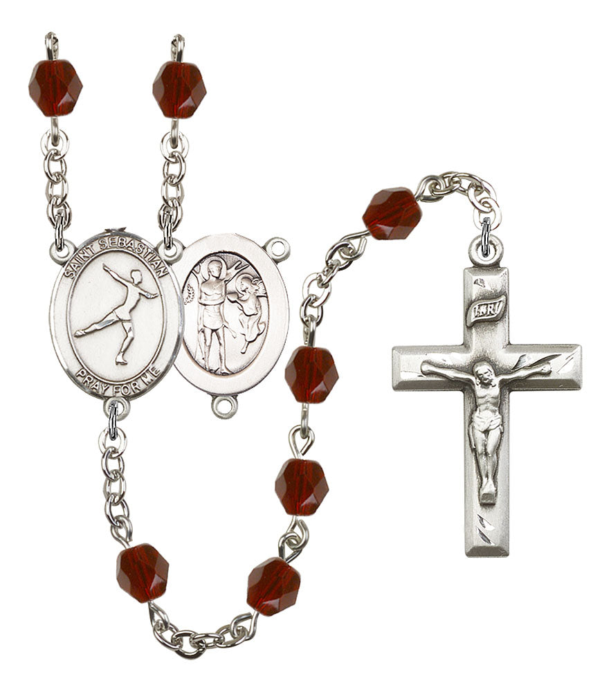 Saint Sebastian and Figure Skating Rosary with Garnet Beads