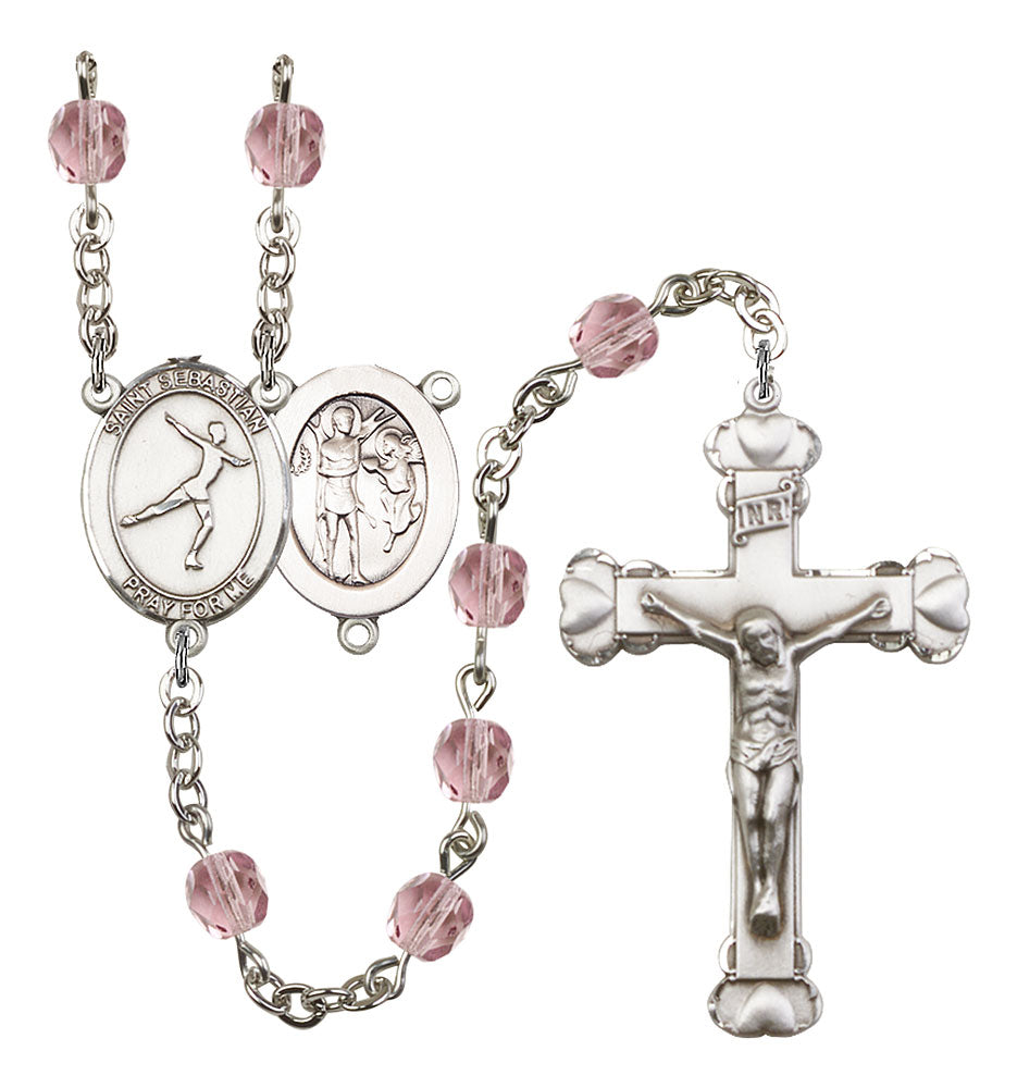Saint Sebastian and Figure Skating Rosary with Light Amethyst Beads