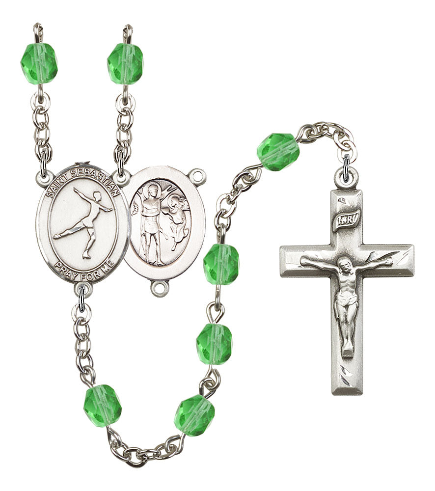 Saint Sebastian and Figure Skating Rosary with Peridot Beads