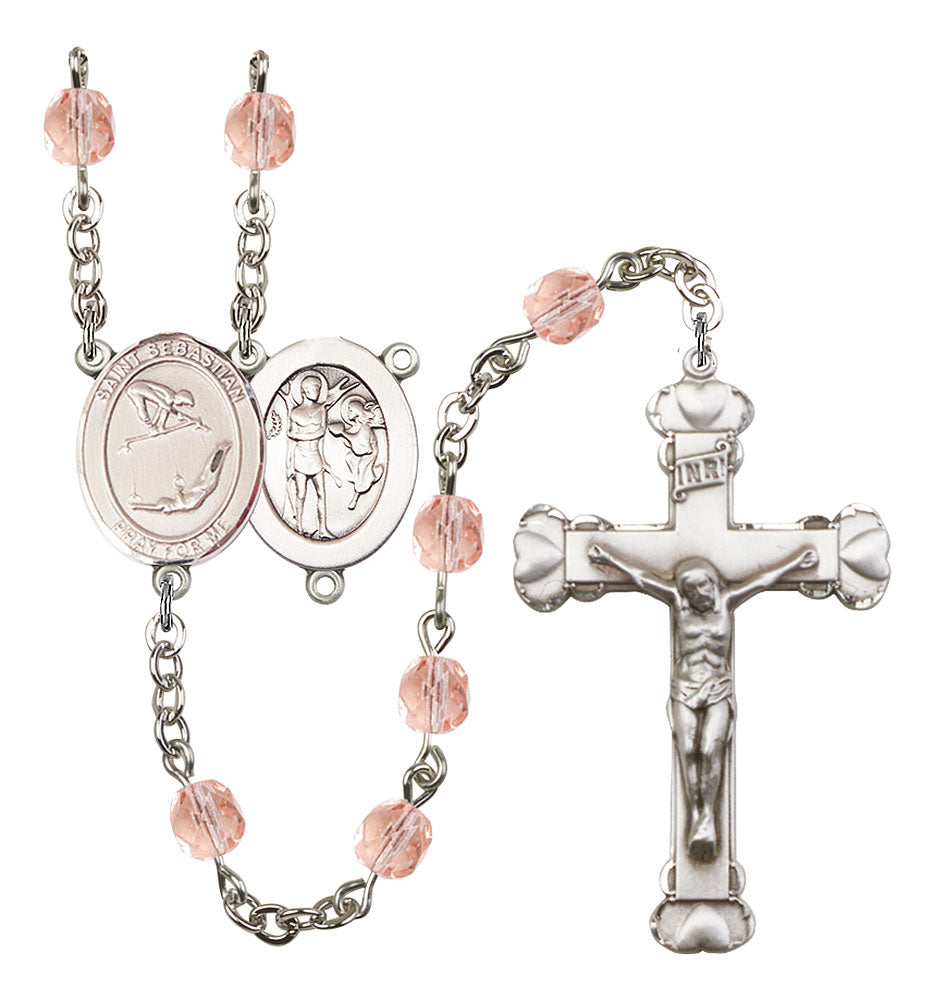 Saint Sebastian and Gymnastics Rosary with Pink Beads
