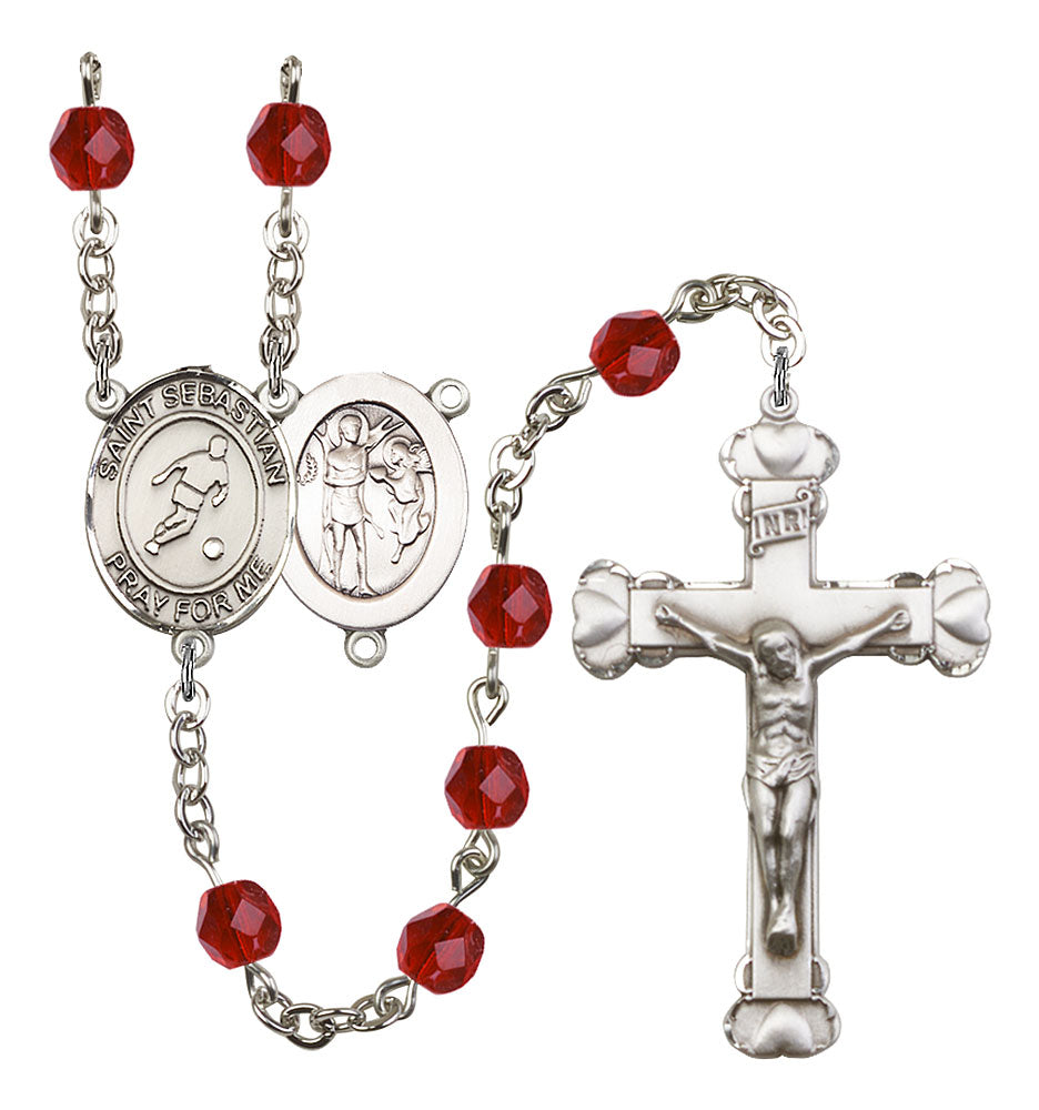 Saint Sebastian and Soccer Rosary with Ruby Beads