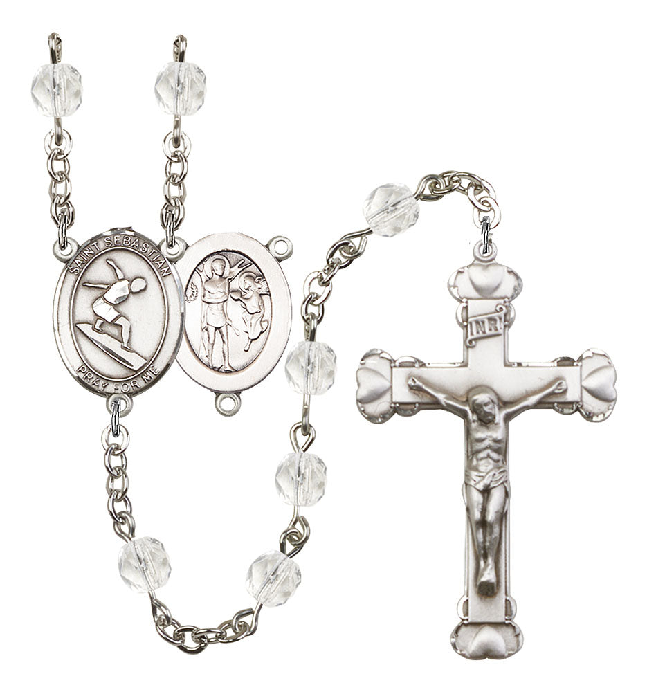 Saint Sebastian and Surfing Rosary with Crystal Beads