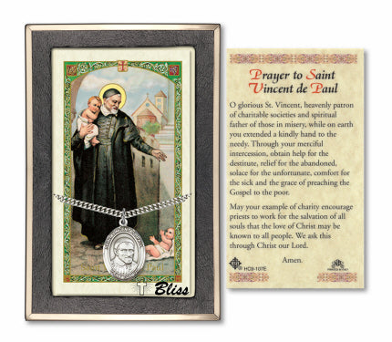 The large-sized Saint Vincent de Paul Medal with Prayer Card will arrive in a deluxe jewelry box, ready to wear or give as a gift.