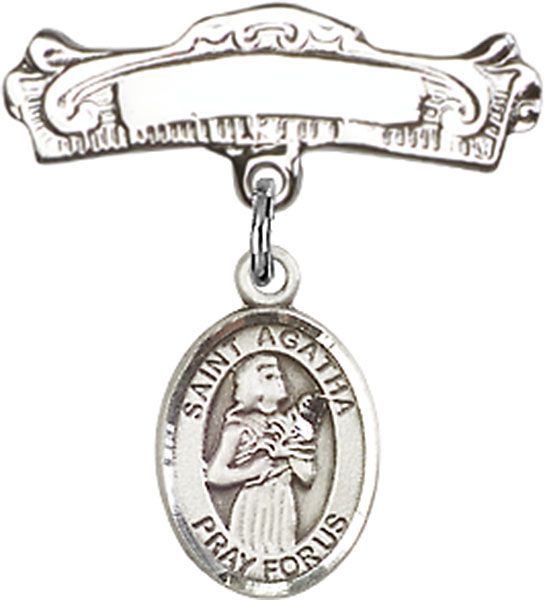 Sterling Silver Baby Badge with St. Agatha Charm and Badge Pin