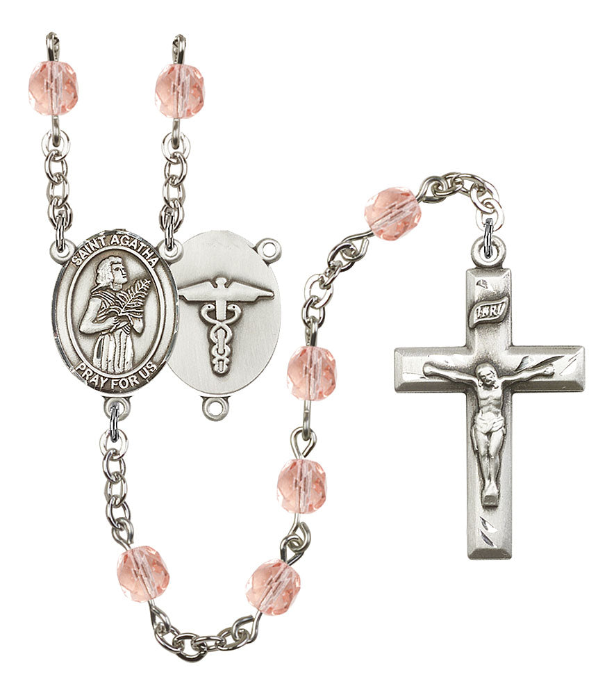 Saint Agatha and Nurse Rosary with Pink Beads